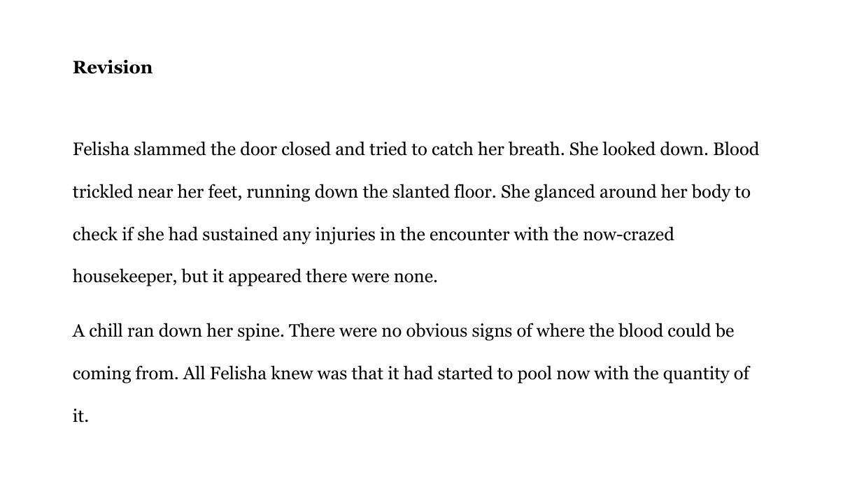 Marcus has finished writing the second draft of his 70,000-word Gothic horror novel. He has spent time reviewing the overall structure and plot to ensure it reads smoothly. Now he wants to focus on the language of the work; he’s worried the tone and mood don’t come through enough and that it may not be as creepy as he feels it should be. He contacts Elixir Editorial for a stylistic edit. Since he’d like direct suggestions and more detailed rewriting examples, he chooses a detailed-level edit.