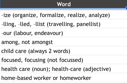 Otherwise, it’s up to you. Style sheets can be as simple as the alpha list (what you see above), or they can include more details on other style choices. Sometimes editors (including myself) will add spaces for the project name, what dictionaries and other reference materials were used, contact information and dates. These can be really helpful when the sheet is shared with a colleague or the author.